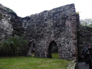 The castle’s history stretches back to 1134 and was held by the Huddlestons until 1748 when it was sold to the Lowthers. The Great Tower (C16th) is obvious from the road but it is harder to see the remains of older buildings. Tom had permission from the Park family to take us through the ruins of the Great Hall, Kitchens and Gateway, an opportunity that doesn’t come up very often.